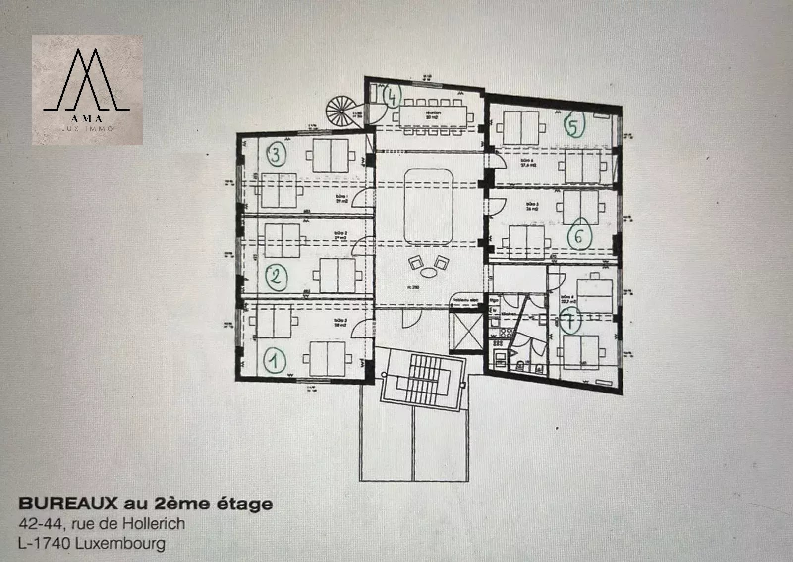 AMA LUX IMMOBILIERE vous propose à la location ce grand bureau individuel privatif entièrement meublé lumineux de ± 30 m² à louer au sein d’un centre d’affaires de 6 bureaux principalement occupés par plusieurs bureaux d’architectes privés.