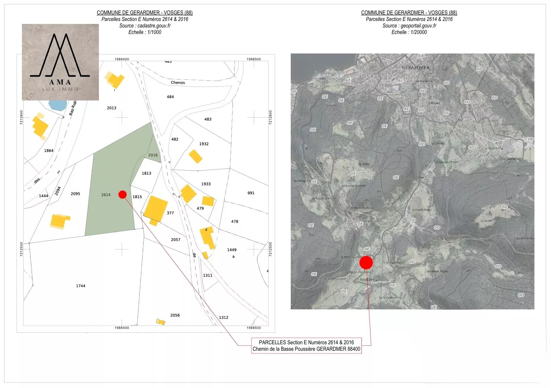 Ce terrain d'une surface totale de 2.700m2 est situé dans le secteur des Bas-Rupt à coté du départ de saut à ski et surplombe le lac de Gerardmer.