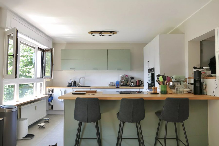 - modern fitted kitchen (2023) opening onto the double living room (+- 43 m²)