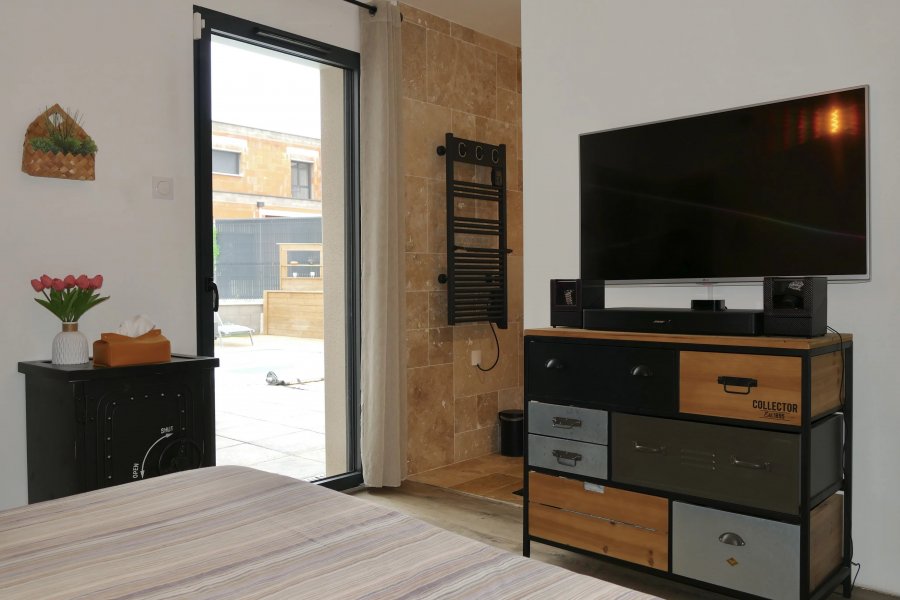 La suite parentale spacieuse inclue une salle de douche de haute qualité ainsi qu'un large dressing aménagé.