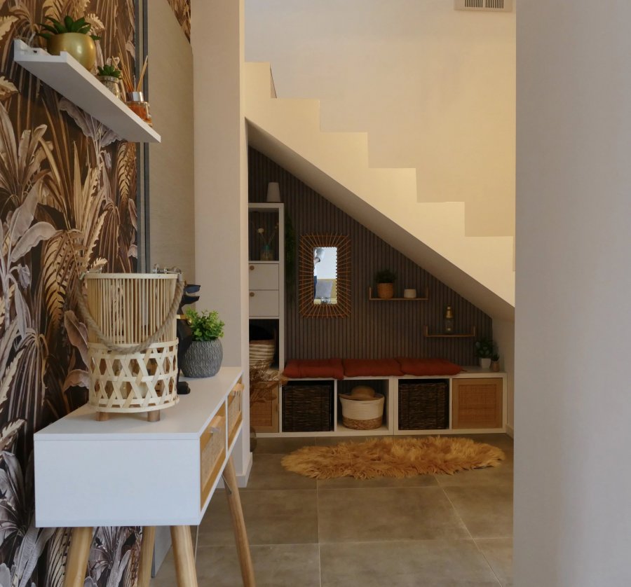 Au rez-de-chaussée l'entrée avec armoires vestiaire intégrée, un WC séparé spacieux, ainsi que l'accès vers le garage pour une voiture (porte motorisée et deux emplacements extérieurs).