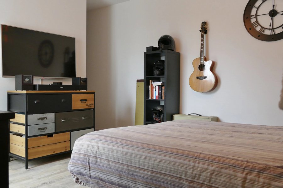 Au premier étage deux chambres à coucher (+- 15 m² et +- 11 m2) dont une avec dressing intégré, et une superbe salle de bain aux matériaux qualitatifs avec toilettes.